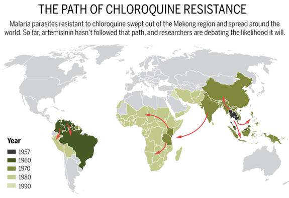 Whatever the reason, this is where it starts. Resistance to chloroquine surfaced here in the 1950s before sweeping through the wider Mekong region and then into India and Africa, causing millions of deaths. Sulfadoxine-pyrimethamine went next, in the 1960s. Mefloquine failed in the 1970s.