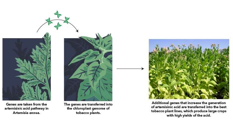 "For the foreseeable future, artemisinin will be the most powerful weapon in the battle against malaria but, due to its extraction from low-yielding plants, it is currently too expensive to be widely accessible to patients in poorer countries. Producing artemisinic acid in a crop such as tobacco, which yields large amounts of leafy biomass, could provide a sustainable and inexpensive source of the drug, making it more readily available for those who need it most."