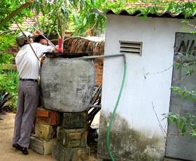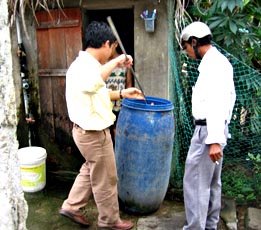 Inspecting and monitoring the DF/DHF prevention activities. (In photo: Medical staff checked the mosquito larvae at a household in Phu Yen province) |