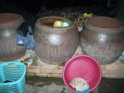 Due to insufficient water supply, the people have to store water in jars, which create favourable conditions for the development of mosquito larvae. |