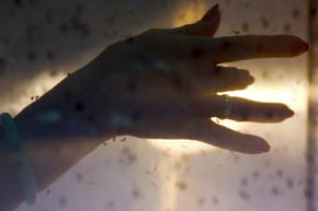 Hundreds of mosquitoes light on her thin forearms and swarm her manicured fingers. They spit, bite and suck until becoming drunk with blood, their bulging bellies glowing red. Yen laughs in delight while her so-called "pets" enjoy their lunch and prepare to mate.