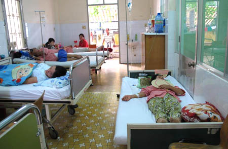 At the area's main hospital in Nha Trang, Dr. Nguyen Dong, director of infectious diseases, says 75 of the 86 patients crammed into the open-air ward are infected with the virus.
