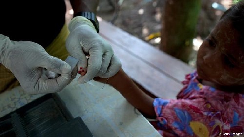 A drop of blood on a microscope slide will reveal whether the child has contracted malaria |