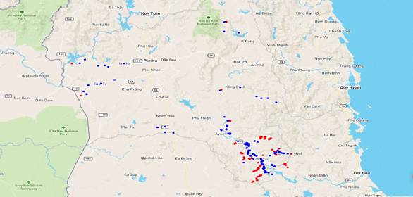 Remarks: The MPs were mainly found in Ia Le and Ia B'Lu communes. This group has forest-involved activities in Duc Co district, where has the border with Cambodia.