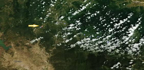 Remarks: Figure 6 is a malaria distribution map with images taken by satellite. In contrast to the basic map shown in Figure 5, the satellite map is the actual image, the vegetation is clearly visible on the map. Therefore, users can see the distribution of MPs located on the map corresponding to the natural habitat such as forests, rivers, streams and lakes.