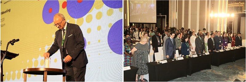 On this occasion, delegates lit candles to commemorate those who died of AIDS, TB and malaria; and attended a photo exhibition on TB eradication.