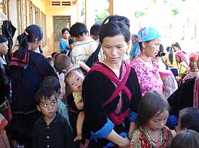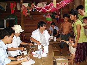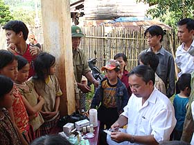 Dr.Nguyen Van Chuong, Vice-director of IMPE-Quy Nhon, interviewing and distributing drugs for the local people |