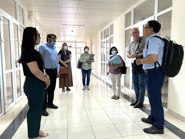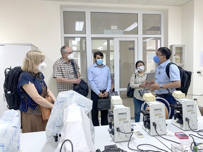 After the meeting, the delegation visited the laboratories of IMPE-QN such as laboratories of malaria parasite culture, in vitro testing, molecular biology, mosquitoes feeding and chemicals testing. The professors highly appreciated the research results made by IMPE-QN in the past time as well as the concerns of the Institute's leadership about investing in infrastructure and laboratory equipment for the sake of scientific research.