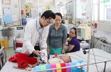 A doctor checks a baby infected with the dengue virus at the Children's Hospital No.1 in Ho Chi Minh City. Photo: Nguyen Mi |