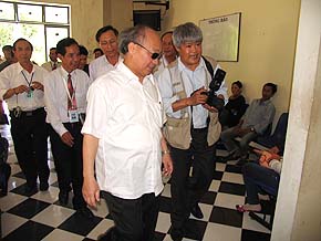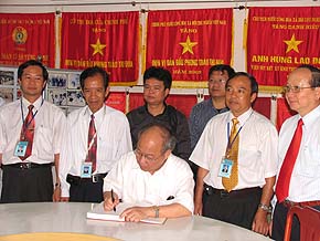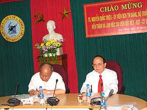 Implementing the workplan 2010 on deploying the activities of local and central health units, from 25-29 April, 2010 the Minister of Health - Nguyen Quoc Trieu visited and met with the provinces of Phu Yen, Binh Dinh and Quang Ngai, including two units directly under the Ministry of Health (MoH)- Quy Hoa National Leprosy Dermatology Hospital and the Institute of Malariology, parasitology and Entomology Quy Nhon.