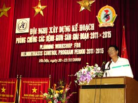 After receiving the opening speech by Dr.Nguyen Manh Hung, PhD., Director-NIMPE, the workshop witnessed the presentations of reports from three institutes and several provinces on activities of soil-transmitted helminthiasis control for primary schools and pre-school children. Participants also contributed opinions and suggestions on the general and specific objectives, and the contents of activities for the target groups. The target groups of most concern are the pre-school children (from 24-60 months old) and women at childbirth ages.