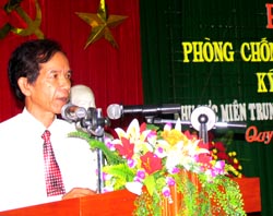 Dr. Trieu nguyen Trung-Director of IMPE Quy Nhon in his opening speech | Dr. Ho Van Hoang-Deputy Director of IMPE Quy Nhon giving speech at the Workshop |