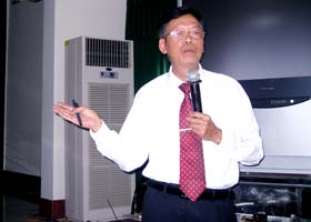Dr. Nguyen Manh Hung, Director of NIMPE reporting on the national malaria control results. | Dr. Le Thanh Dong-Director of IMPE-Ho Chi Minh city giving speech at the Workshop |