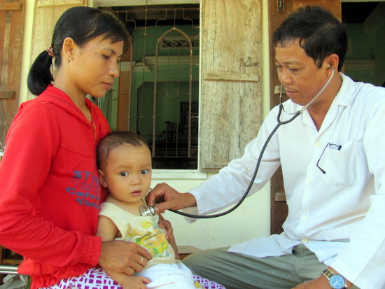 Medical staff from the Binh Dinh Center for the Prevention of Malaria and Endocrinology is conducting diagnosis for the people in the malaria hot-spot of Gia Van hamlet, My Hoa commune, Phu My district. |