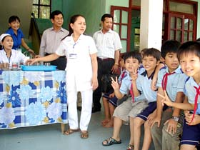 Between April-May of 2010, all the provinces carried out the deworming activities for school children before the summer holidays. The IMPE-Quy Nhon has organised the supervision of the deworming campaign in some primary schools. As a results, most of provinces supported the campaign enthusiastically and seriously, with the close cooperation between the health and education sectors.