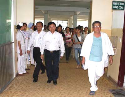 Health Deputy Minister Trinh Quan Huan (the middle person) urgently went to Ho Chi Minh City to direct the disease control. Courtesy: vnexpress.net |