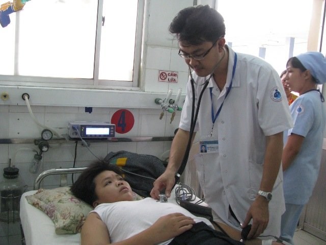 A doctor checks a boy infected with dengue fever at a hospital in Ho Chi Minh City. Photo: Hoang Nhung/TBKTSG |