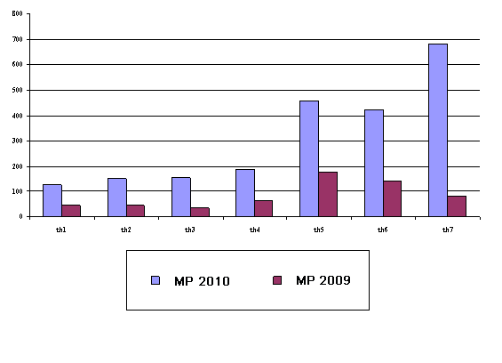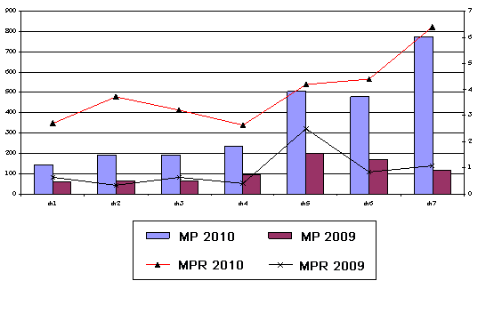 It can be seen from the chart of development of malaria situation between months of 2009 and 2010, MP and MPR increased continuously over months, especially in July 2010 MP raised drastically by 675% against the same period of 2009 (775/117), but no deaths from malaria. The increase of malaria indexes was mainly in the mountainous areas like Nam Tra My district or in the gold-fields of Phuoc Thanh and Phuoc Loc communes (Phuoc Son district) with very high risk of outbreaks on large scale. The malaria situation in the communes of Tay Giang, Dong Giang and Nam Giang has been stable.