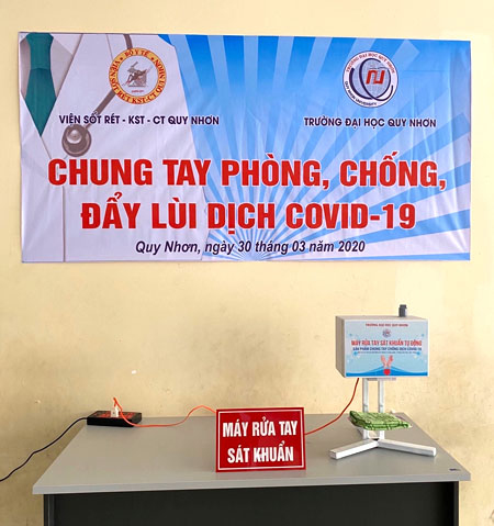 Moreover, on March 30, 2020, in order to join hands to prevent and fight the disease Covid-19, the Institute's Clinic received remote temperature measuring device and self-contained device Automatic hand washing by a group of lecturers of Faculty of Engineering & Technology of Quy Nhon University deployed the fabrication and installation school for free.