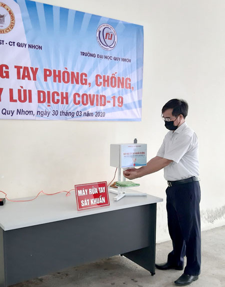 Technology of Quy Nhon University instructs the use of automatic hand sanitizer
