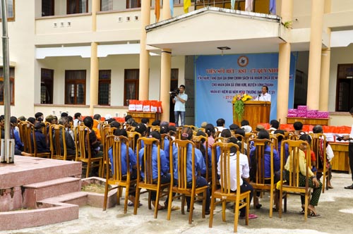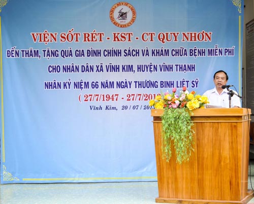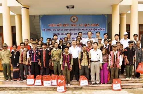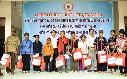 Present at the gifting ceremony were Dr. Nguyen Van Chuong-Director of IMPE-Quy Nhon, Heads of specialised and functional departments of IMPE-Quy Nhon, Dr. Hua Tu Thao, Director of District Health Centre of Vinh Thanh, leaders of Vinh Kim commune and 50 individuals including war invalids, martyrs' relations and families deserving well of the revolution and the country in wartime; especially, reporters of Binh Dinh television also attended this ceremony .
