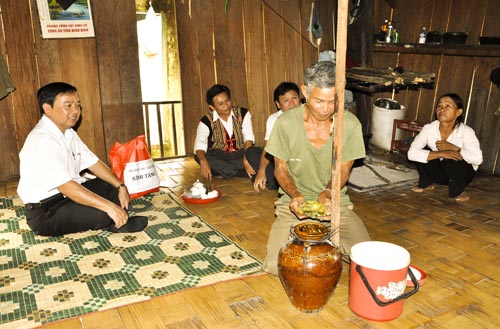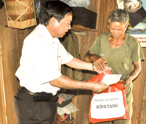 Dr. Nguyen Van Chuong inquiring after and giving gift packages to families of Vinh Kim commune. |