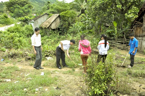 The HCMCYU of the IMPE-Quy Nhon coordinated with the HCMCYU of Vinh Kim commune to do environmental sanitation such as bush clearance and stagnant pools filling to minimize intermediaries of transmitting diseases as well as launch the people to preserve their surrounding environment.