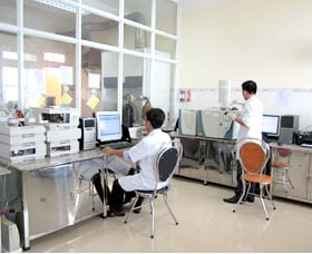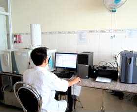 The DMB consists of 14 staff members, including 1 PhD of biochemistry, 1 Master of analytical chemistry, 1 Master of Microbiology, 3 Bachelors of analytical chemistry, 1 engineer of biotechnology, 4 bachelors of Biology, 1 medical technician. The affiliated laboratories specialize in physiochemistry, chromatography, microbiology and molecular biology and undertake the functions/tasks specific toevery testing fields such as basic physiochemistry, chromatography, microbiology, toxicology, PCR, etc. These labs have been equipped with lots of modern machinery such as Gas chromatography (GC/FID, GC/ECD, GC/MS), High-performance liquid chromatography (HPLC/UV-VIS), UV-Visible Molecular Absorption Spectrometry (UV-VIS), Realtime PCR machines, and so on.