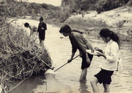 Sub-IMPE in 1977 | Surveillance activities of mosquito larvae at streams for research work |