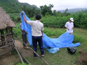 Staff of Entomology Department investigating blood-sucking bugs at locality | Staff of Entomology Department in their field work. |