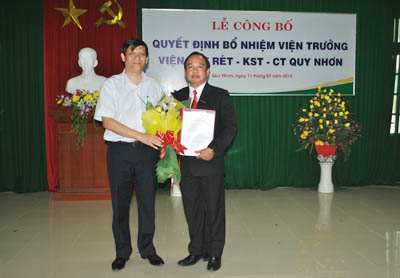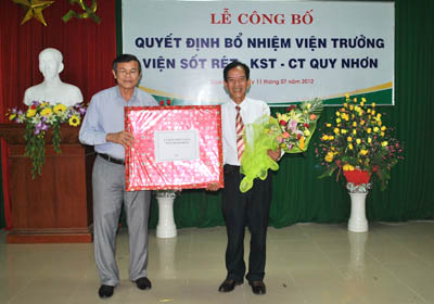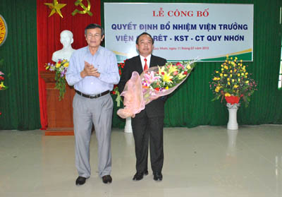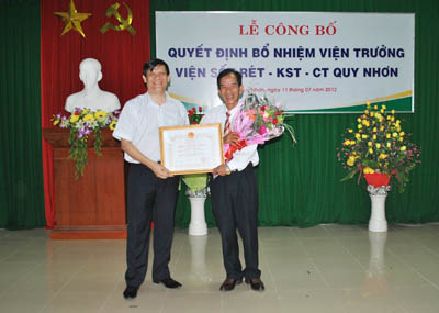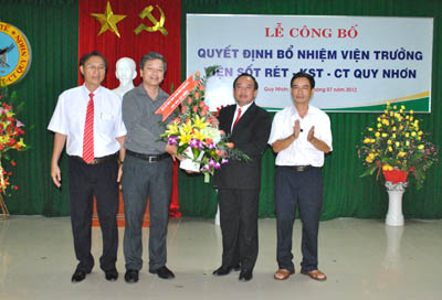 On 11 July, 2012, the Ministry of Health (MoH) held the official appointment announcement ceremony of new IMPE-QN's Director Dr. Nguyen Van Chuong in place of Dr. Trieu Nguyen Trung, who is of an age to discontinue the management and finish his directorial term of the Institute.
