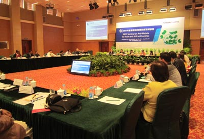 Participants to the Seminar included the experts of MMV (Medicines for Malaria Venture), Dr. Tshefu Antoinette from Kinshasa School of Public Health, University of Kinshasa (Democratic Republic of Congo), Dr. Ilse Christina Hendriksents and Dr. Yoel Lubell from Mahidol-Oxford Research Unit, Faculty of Tropical Medicine, Mahidol University (Kindom of the Netherlands), Prof. Dr. Xu Mingqi - Vice Director of Shanghai Academy of Social Sciences, Dr. Cao Jun -Assistant Director, Chief of Malaria Department, Jiangsu Institute of Parasitic Diseases, Prof. Huang Fang from Chinese Center of Disease Control and Prevetion, National Institute of Parasitic Disease, the leadership of Shanghai Fosun Pharmaceutical Co., Ltd in Shanghai and Guilin City (China), representatives of Ministry of Commerce of P.R.China, of Shanghai Municipal Commission of Commerce, and 37 representatives of 16 Asian and African countries such as Viet Nam (2), Nepal (3), Pakistan (2), Cambodia (3), Phillipines (2), Indonesia (5), Myanmar (3), Timor -Leste (2), Ghana (2), Nigeria (3), Uganda (1), Liberia (2), Ethiopia (1), Sudan (1), Sierra Leone (3), Kenya (2). They are mostly the managers of the national malaria control programmes, parasitologists, experts in the field of tropical diseases, clinical pharmacists and bachelors of biology, etc. whose work directly involve the national anti-malaria programmes.
