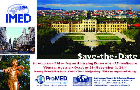 Drawing together human and veterinary health specialists, 5thInternational Meeting on Emerging Diseases and Surveillance (IMED, Oct. 31, 2014 - Nov. 3, 2014)serves as a true one Health forum where those working in diverse specialties and diverse regions can meet, discuss, present and challenge one another with findings and new ideas.