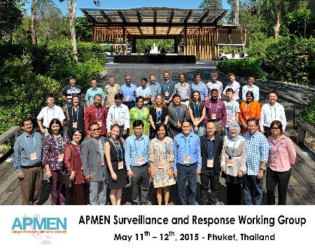 The third Surveillance and Response Working Group meeting was held May 11-12, 2015 in Phuket, Thailand. Forty participants attended the meeting, representing 11 of the APMEN countries, three APMEN Partner Institutions, in addition to WHO Global Malaria Programme, ERAR and SEARO and other partners and donors. The objectives of the meeting were twofold: 1) to work together on a minimum set of indicators for elimination and prevention of reintroduction; and 2) to encourage countries to plan for changing from control programs to elimination programs and to understand the changes in activities and indicators that are required.