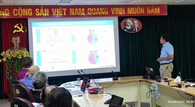 At the meeting, Dr. Huynh Hong Quang gave the presentation on IMPE-QN, malaria situation in Central Vietnam and antimalarial drug resistance in Vietnam in general and Central Vietnam in particular within the last 3 years. According to the report, the Central Vietnam is characterized by its complicated malaria situation compared with the North and the South. Despite the decrease in malaria indicators, the Central Vietnam has still confronted many difficulties and challenges such as uncontrollable mobilized population (free migrants, agricultural workers, forest goers, field-hut sleepers, border crossers between Vietnam-Cambodia or Vietnam-Laos), insecticide resistance and ineffective management of malaria patients at grassroots level. Moreover, Plasmodium falciparum population resistance to artemisinine derivatives or even artemisinine + partner drugs (piperaquine phosphate) has spread in many provinces, threatening the target of P.falciparum malaria elimination by 2025 and the roadmap of malaria elimination by 2030.