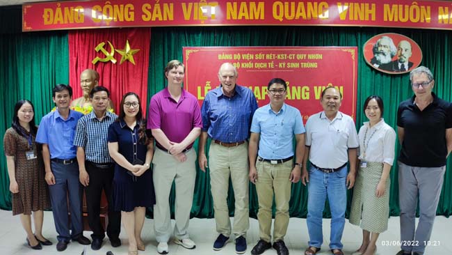 On June 3th,2022, a delegation of experts from VinUniversity (Ha Noi), Purdue University (USA) and Turine University (Italy) visited and met with the leadership of the Institute of Malariology, Parasitology and Entomology Quy Nhon (IMPE-QN). The visit was aimed to learn about malaria situation and antimalarial drug resistance in Central Vietnam; besides, the partners presented some initial results of their clinical study Phase 2 in some Greater Mekong Subregion (GMS) countries and introduced the next steps for clinical trial Phase 3 with larger sample sizes in malaria-endemic areas of Vietnam, Laos, Thailand.