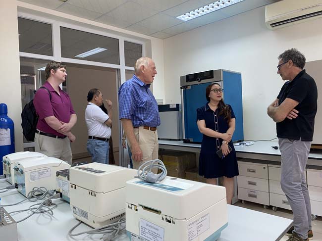 Besides, the delegation also visited and worked with the investigators of IMPE-QN at the laboratories of malaria parasite culture, in vitro testing and molecular biology. The experts were also interested in the collaborating research and training programs between IMPE-QN and other international partners such as Oxford University Clinical Research Unit Vietnam (OUCRU-VN), Australian Defence Force Malaria and Infectious Disease Institute (ADFMIDI), and U.S. Navy Medical Research Unit Number Two (NAMRU-2). The professors highly appreciated the research results made by IMPE-QN in the past time as well as the concerns of the Institute's leadership about investing in infrastructure and laboratory equipment for the sake of scientific research.