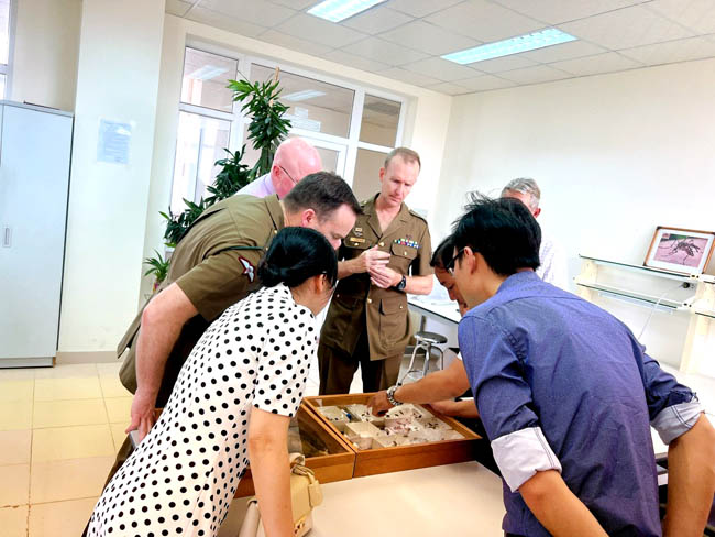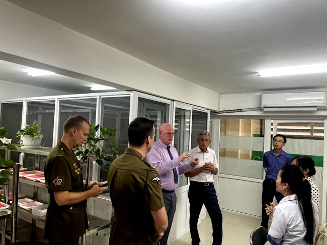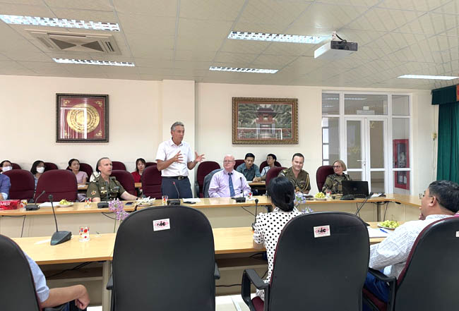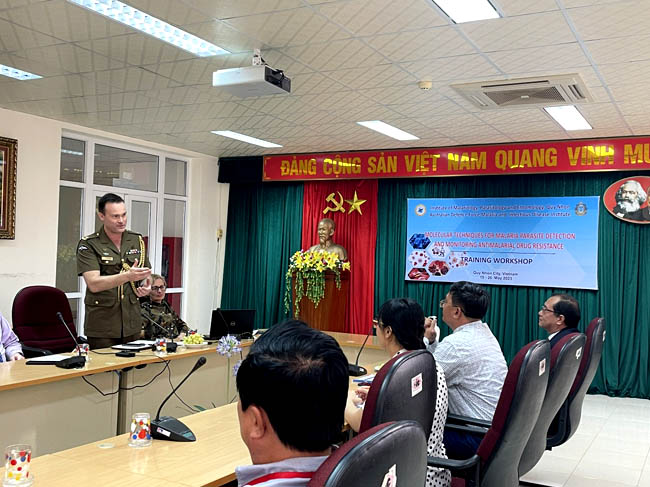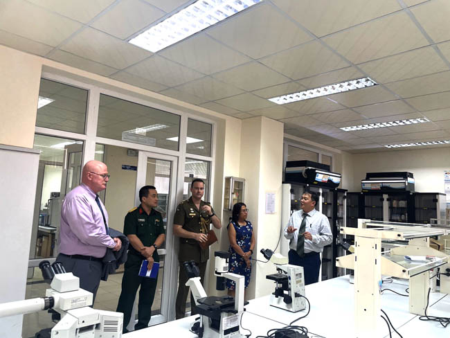 On the international partners' side, there were expert groups from the Australian Defence Force Malaria and Infectious Disease Institute (ADFMIDI) under the Australian Department of Defence, the Naval Medical Research Unit Two (NAMRU-2) under the U.S. Navy, and the Australian Defence Attaché's Office. Welcoming and working with the experts were Assoc. Prof. Dr. Ho Van Hoang - Director, Dr. Huynh Hong Quang - Vice Director, leaders and staff members.