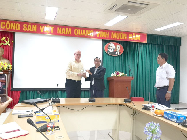 Assoc.Prof.Dr. Ho Van Hoang - Director of IMPE-QN presenting souvenirs to the delegation leader of NAMRU-2
