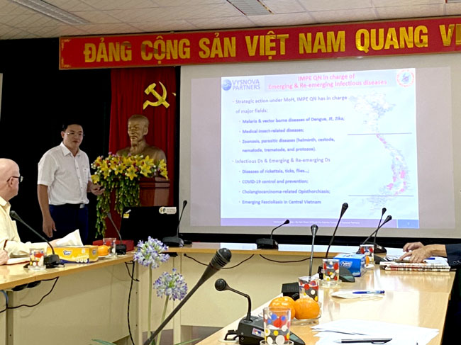 On May 9th 2022, a delegation of experts from the US Naval Medical Research Unit (NAMRU-2) visited and worked at the Institute of Malariology, Parasitology and Entomology Quy Nhon (IMPE-QN) with the purpose of exchanging information on joint research programs in the field of research and treatment of malaria as well as other infectious diseases.