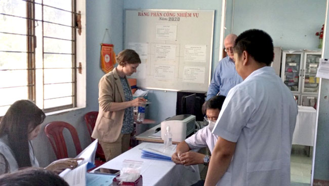 The collaborative mission between IMPE-QN and NAMRU-2 visiting and working at the health center in Krong Pa district, Gia Lai province.