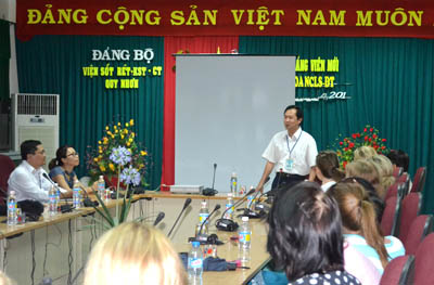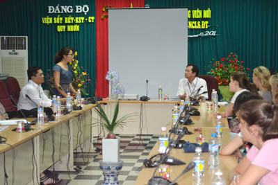 In the morning of May 31, 2013, according to the suggestion of the Provincial People's Committee of Binh Dinh, the Institute of Malariology, Parasitology and Entomology Quy Nhon (IMPE-Quy Nhon) gave a warm reception to the Karolinska Institutet students (Sweden), who had arrived in Vietnam under the student exchange programme in Global Health within the cooperation between HaNoi Medical University and Karolinska Institutet.