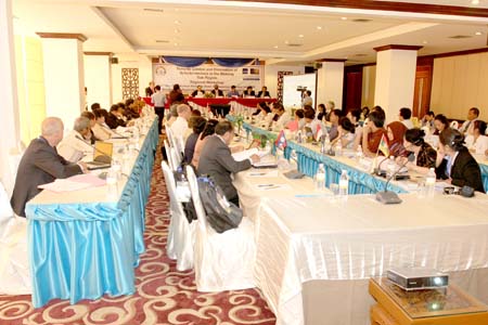 After the opening speech of the leader of the Ministry of Health of Lao PDR and speeches of the representatives of Infectious Diseases Project in Mekong sub-region and ADB Project, the WHO's expert presented report on epidemic situation and results of Schistosomiasis control activities in Mekong sub-region.