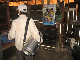 In March 20, 2009, the IMPE Quy Nhon, the Malaria Control Centre of Dak Lak province, and the district health centre of Easup in coordination with the standing Vietnam Television Station (VTV) in the West highlands conducted the survey on evaluating malaria situation among mobilised people and providing suitable measures of malaria control such as: blood slide examination for malaria parasites; diagnosis and treatment for malaria, and distribution of antimalaria drugs; indoor residual spraying and bednet impregnation for vector control; and delivery of posters and leaflets for malaria control for mobilised group at village no.13, CuKBang commune, Easup district. This group of population is composed of 1,026 people mainly of the H'Mong, Dao, San Chi ethnics, migrating from Lao Cai, Cao Bang, Lang Son, Ha Giang during 2008-2009. They are living in poorly-structured huts, constructed with low-quality wood or bamboo wattles, and roofed with torn tents.
