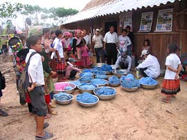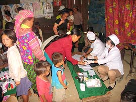 Although it is very difficult to have a proper management and of mobilised people, the local health system has made all possible efforts to provide those concerned subjects with primary health services, especially the supplemental malaria control measures such as indoor residual spraying at their tents, impregnated treated bednets, provision of malaria drugs for self-treatment. These measures helped to limit down malaria mobidity and mortality rate among these mobilised people. In his answer to the interview on television, Mr. Thao Seo Vanh, village head of the H'Mong ethnic said that "During their visits at the our houses, the health workers usually carry out bednet impregnation with insecticdes, indoors insecticide spraying. They also give us malaria drugs for self-treatment and recommend us to go to communal health station upon getting malaria." In reality, when the survey group came to the village, they received the active participation from the mobilised people. As a result, there were only 4 malaria positive cases detected from 400 examined people. However, their unsettled living has been driving themselves at risk of malaria infection: they live in scattered groups of houses outreaching the accessibility of health care faclities, no matter how hard the health workers have tried, they cannot protect the mobilised from getting malaria.