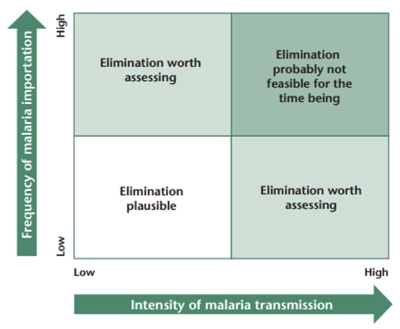 The difficulty and feasibility of eliminating malaria from an area is dependent on understanding both levels of malaria transmission and malaria parasite importation |