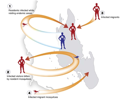 Following WHO recommendations, the government of Zanzibar undertook a study of the feasibility of eliminating malaria on their islands in collaboration with the Clinton Health Access Initiative, and involving Prof. Tatem. The proximity and high connectivity through population movements to the mainland where transmission levels remain substantially higher in many places implied that imported malaria would be a constant problem, which could make the task of elimination from the islands particularly challenging. In general, malaria parasites can be imported into Zanzibar in one of three ways: (i) the migration of an infected mosquito, (ii) infected humans visiting or migrating from the mainland, or (iii) residents of Zanzibar visiting the mainland and becoming infected and then returning. While mosquitoes may occasionally arrive though wind-blown or accidental aircraft or ship transport, typically they will only fly short distances. Human carriage of parasites therefore represents the principal risk, and is to blame in many past instances where malaria has resurged.