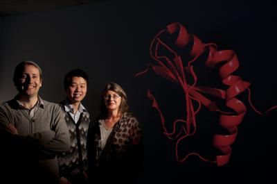 Researchers (from left) Dr Jake Baum. Mr Wilson Wong and Dr Jacqui Gulbis from the Walter and Eliza Hall Institute in Melbourne, Australia, have upended the theory of how cells grow and move, solving the structure of a protein that cuts power to the cell "motor". The protein could be a potential drug target for future malaria and anti-cancer treatments. (Photo Credit: Walter and Eliza Hall Institute) |