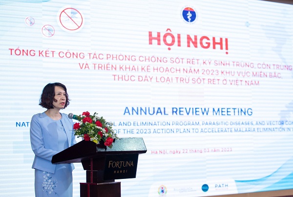 On March 22, 2023, in Ha Noi, the Ministry of Health and PATH - a global non-profit organization on public health held the annual review meeting on the National Malaria Control and Elimination Program (NMCEP), parasitic diseases and vector control in 2022, and implementation of the 2023 action plan to accelerate malaria elimination in Viet Nam. Assoc.Prof.Dr. Nguyen Thi Lien Huong, Deputy Minister of Health attended and spoke at the meeting.