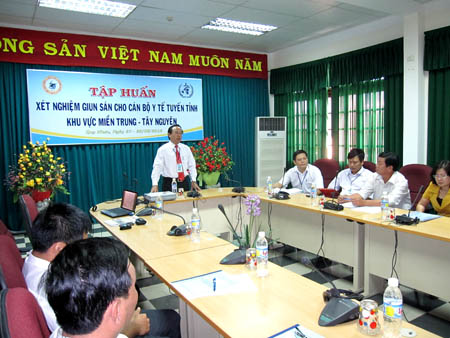 Under the sponsorship of the World Health Organization (WHO), the IMPE-Quy Nhon held the training course on Diagnostic Test of Helminthiasis for medical staff of provincial malaria centres/centers for preventive medicine and some provincial general hospitals of 11 Central - Western Highland provinces (Dak Lak, Gia Lai, Kon Tum, Binh Thuan, Khanh Hoa, Phu Yen, Binh Dinh, Da Nang, Thua Thien Hue, Quang Nam). The total number of trainees was 22, including 07males and 15 females; the trainees' professional qualifications: Doctors: 03, Bachelors: 08, Physicians: 02, Medical Technicians: 09.